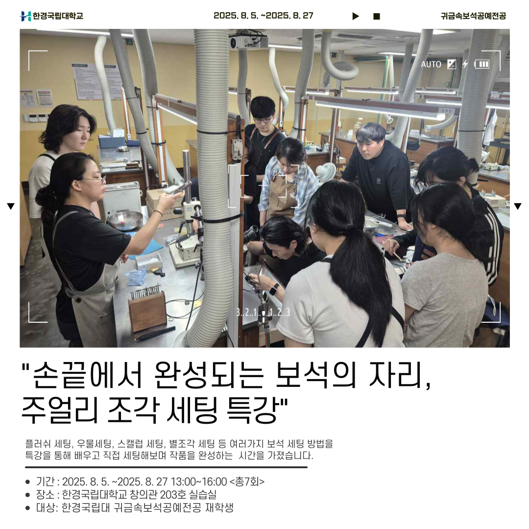 fnctId=bbs,fnctNo=837 RSS 2.0 총 22 개의 게시물이 있습니다. 게시물 검색 제목 작성자 게시글 리스트 2025학년도 귀금속보석공예전공 견학_익산보석박물관 새글 작성일 2025.12.05 작성자 디자인예술스포츠학부 썸네일 자세히 보기 2025학년도 귀금속보석공예전공 견학_티파니앤코 새글 작성일 2025.12.05 작성자 디자인예술스포츠학부 썸네일 자세히 보기 2025학년도 귀금속보석공예전공_졸업전시회 새글 작성일 2025.12.05 작성자 디자인예술스포츠학부 썸네일 자세히 보기 2025학년도 귀금속보석공예전공 특강_영감에서 디자인까지 특강 새글 작성일 2025.12.02 작성자 디자인예술스포츠학부 썸네일 자세히 보기 2025학년도 귀금속보석공예전공 특강_라이노&지브러쉬 모델링 특강 새글 작성일 2025.12.02 작성자 디자인예술스포츠학부 썸네일 자세히 보기 2025학년도 귀금속보석공예전공 특강_[인센티브]지브러쉬를 활용한 유기적 모델링 실습특강 새글 작성일 2025.12.02 작성자 디자인예술스포츠학부 썸네일 자세히 보기 2025학년도 귀금속보석공예전공 특강_[육성사업]특화 교육과정 개발·적용 특강 새글 작성일 2025.12.01 작성자 디자인예술스포츠학부 썸네일 자세히 보기 2025학년도 귀금속보석공예전공 견학_주얼리페어 새글 작성일 2025.12.01 작성자 디자인예술스포츠학부 썸네일 자세히 보기 2025학년도 귀금속보석공예전공 견학_국가무형유산전수관 새글 작성일 2025.12.01 작성자 디자인예술스포츠학부 썸네일 자세히 보기 2025학년도 귀금속보석공예전공 특강_[육성사업]주얼리 조각 세팅 특강 작성일 2025.11.28 작성자 디자인예술스포츠학부 썸네일 자세히 보기 2025학년도 귀금속보석공예전공 견학_와이스미스 작성일 2025.11.28 작성자 디자인예술스포츠학부 썸네일 자세히 보기 2025학년도 귀금속보석공예전공 특강_[육성사업]주얼리크라우드 펀딩 특강 작성일 2025.11.28 작성자 디자인예술스포츠학부 썸네일 자세히 보기 처음 12 1 2 다음 페이지 끝