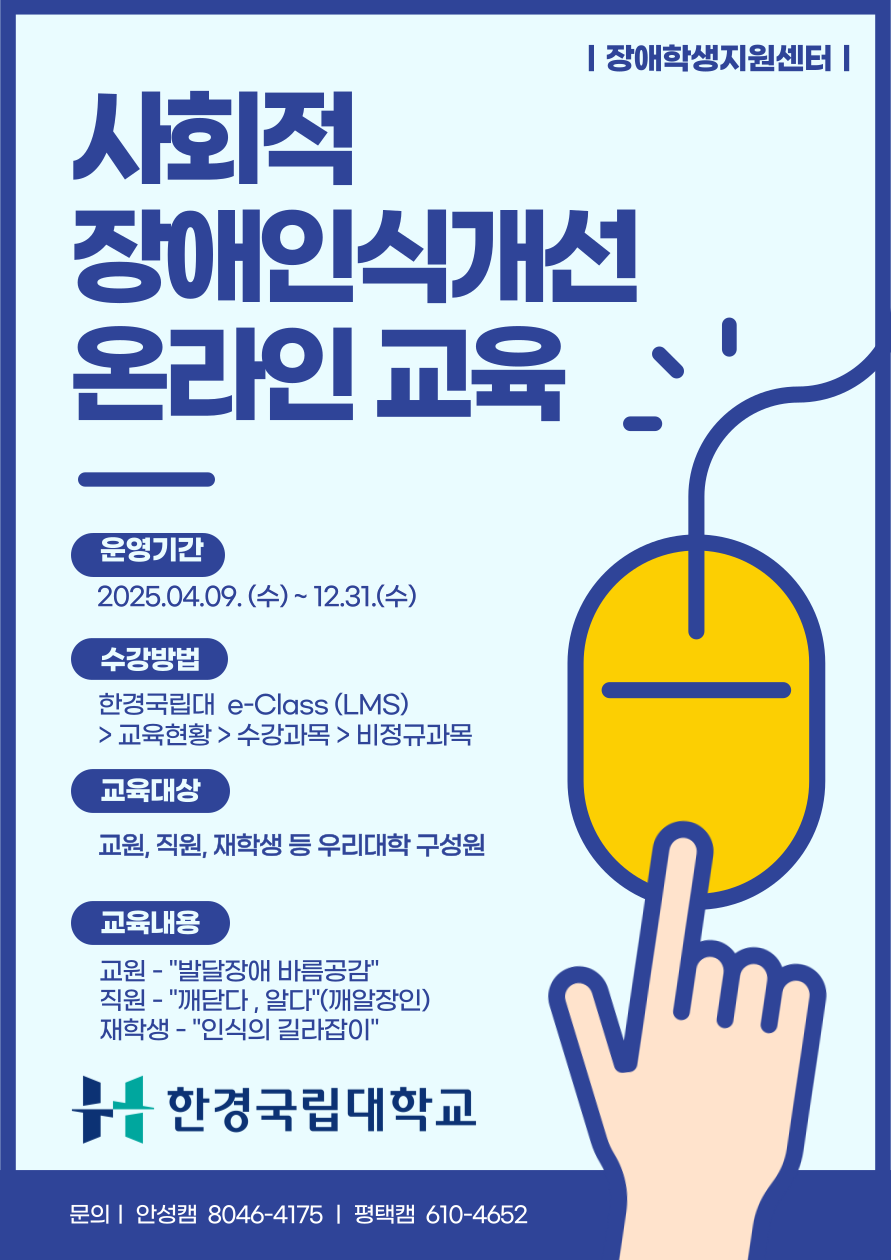 문의: 장애학생지원센터(본원) 031-610-4652(박세영)