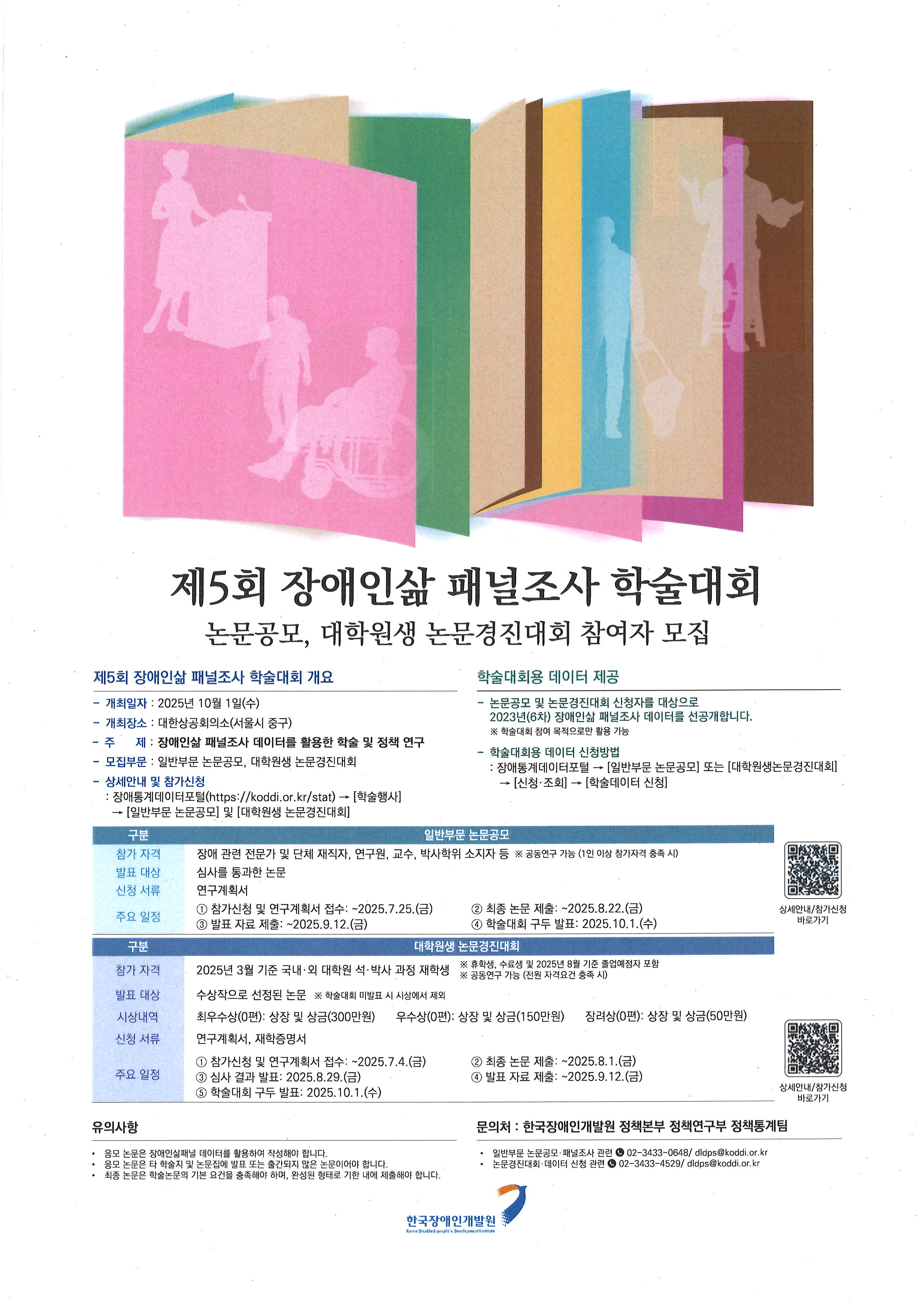 한국장애인개발원 '제5회 장애인삶 패널조사 학술대회' 안내
