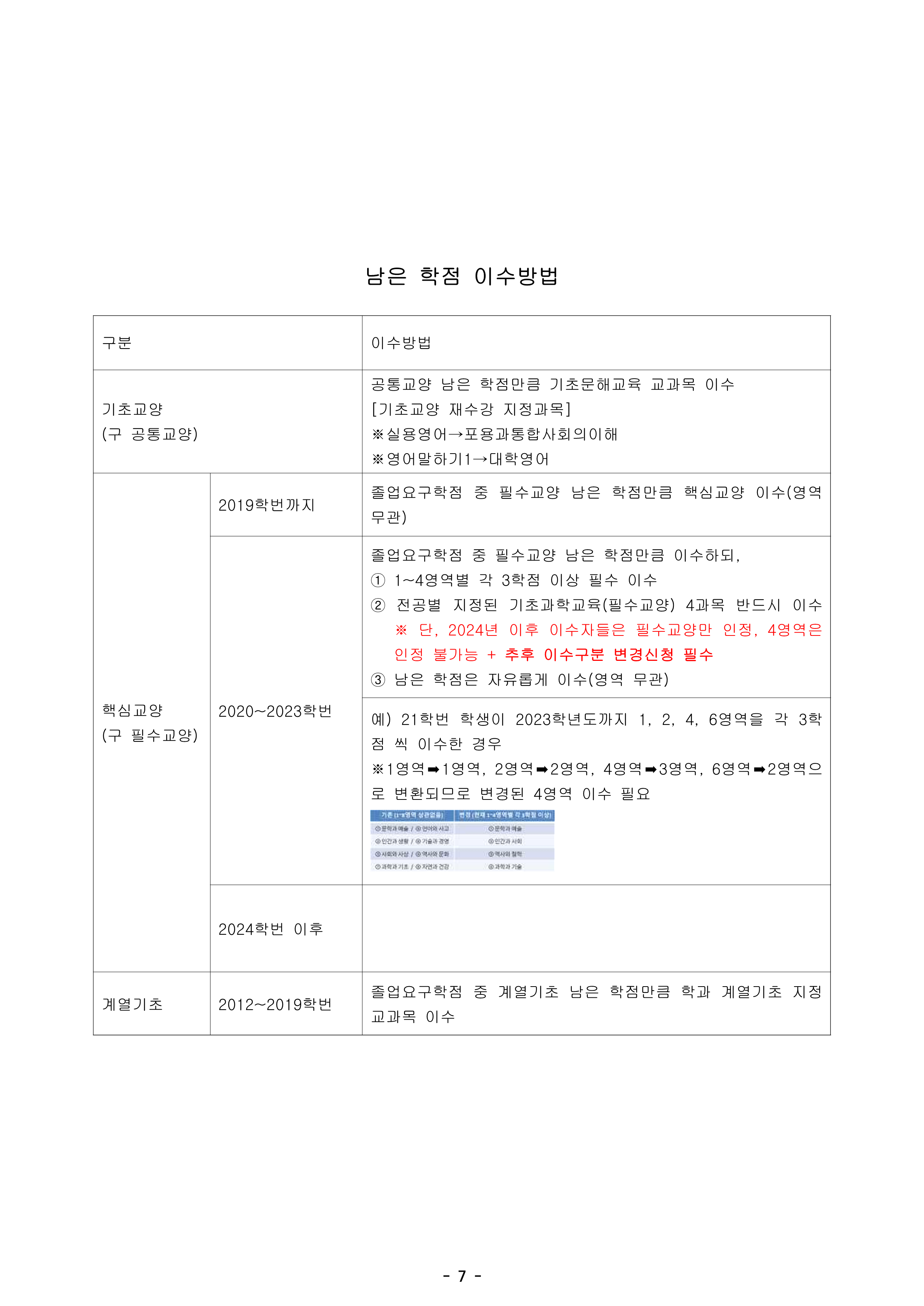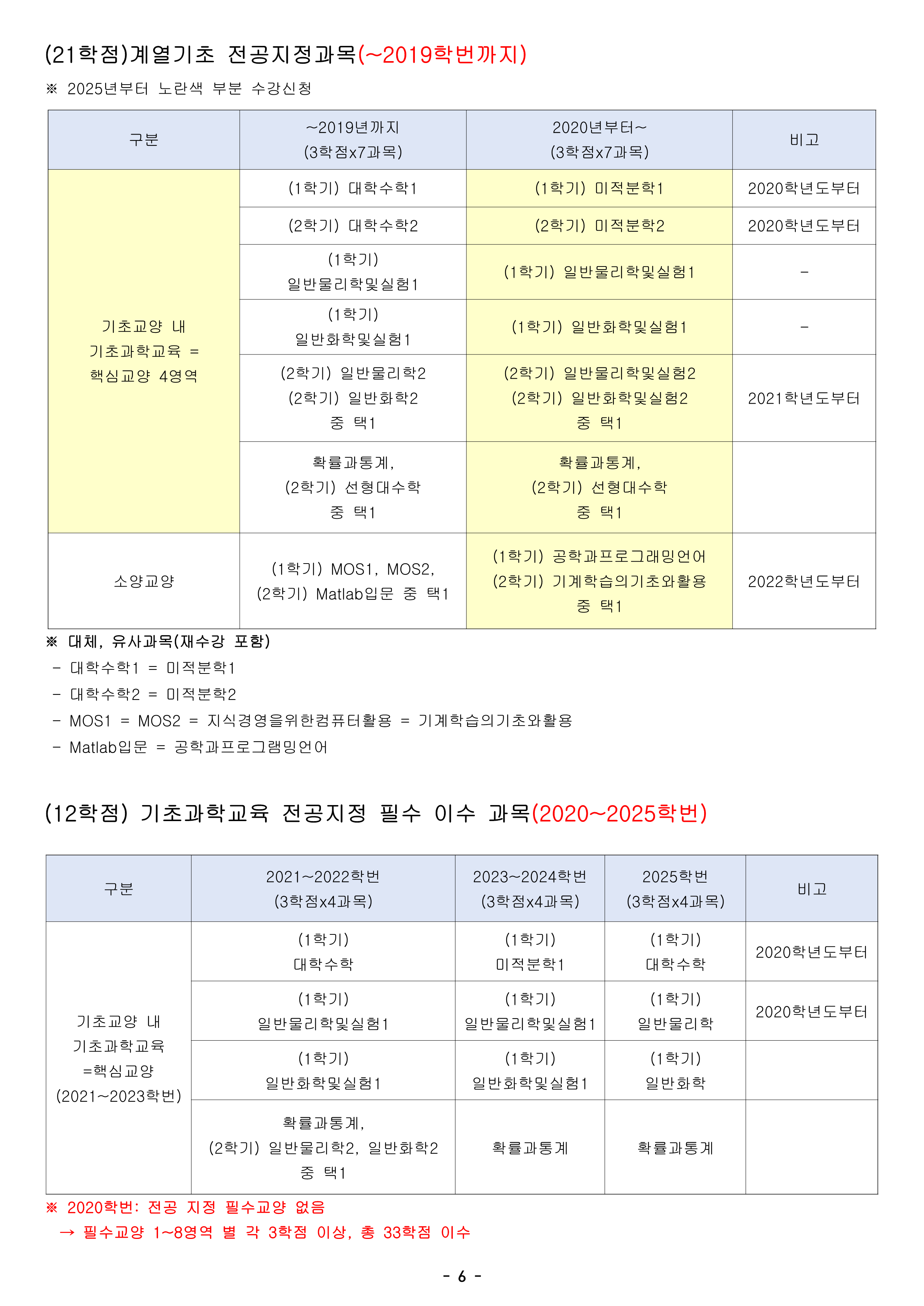 매년 교양 교육과정이 개편되고 있어서, 몇 학번이 몇 년도에 이수하였는지에 따라 조금씩 인정되는 범위가 달라지므로 유의하여 수강해주시기 바랍니다.