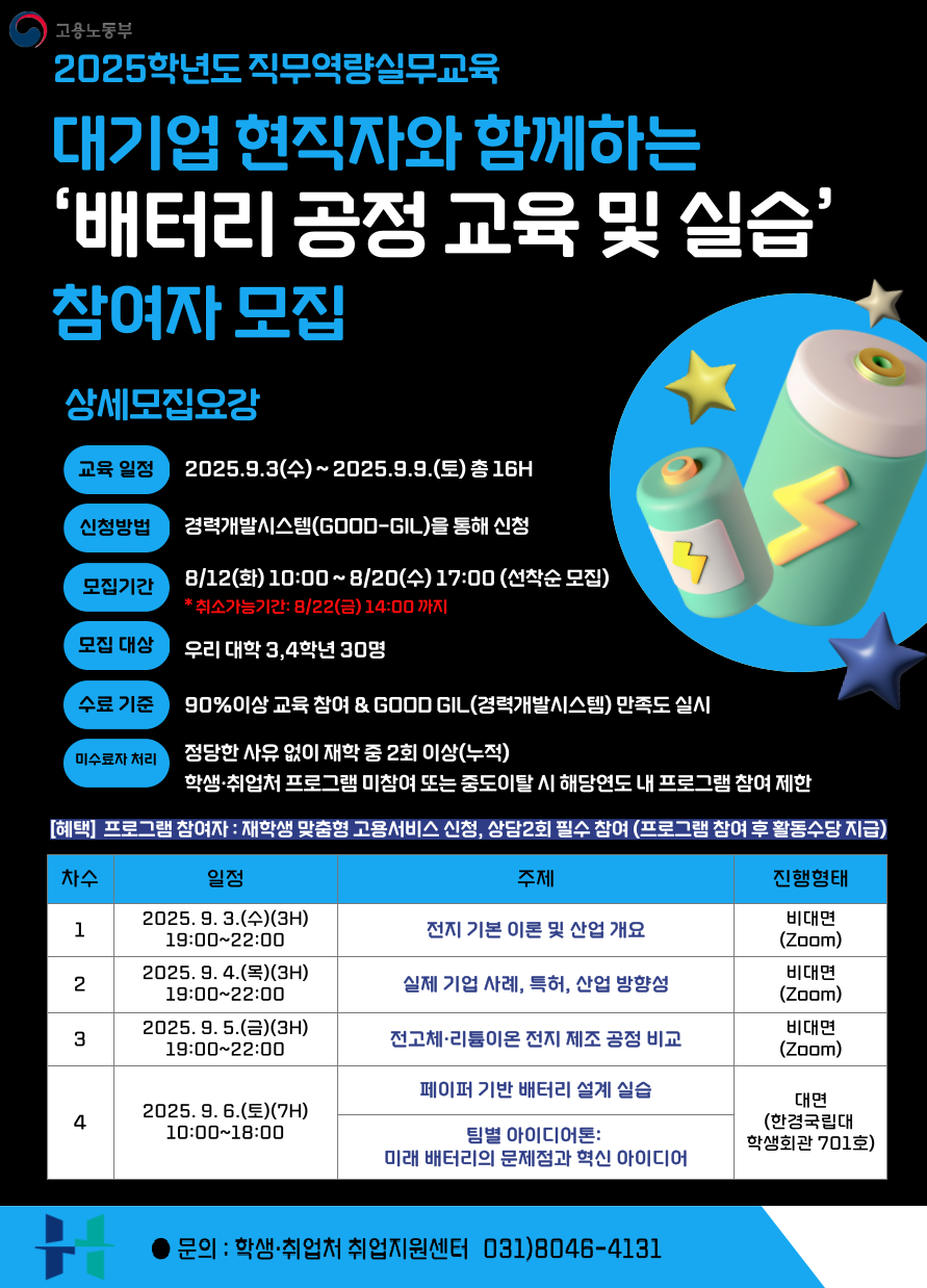 1. 프로그램명: [2025학년도 직무역량실무교육] 배터리 공정 교육 및 실습 과정