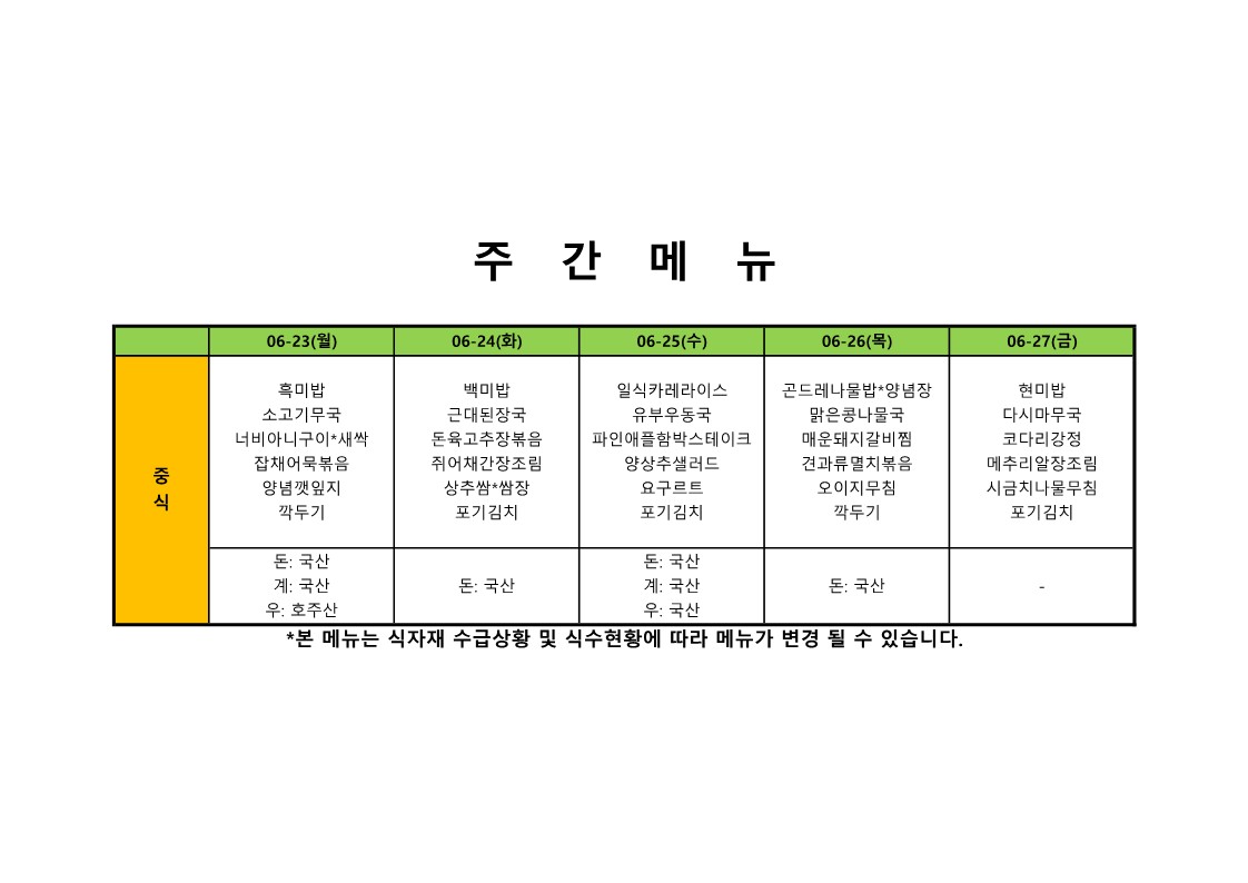 2024. 6. 24. ~ 2024. 6. 28. 주간식단표