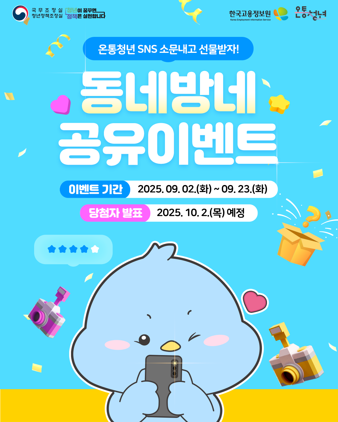 fnctId=bbs,fnctNo=597 페이지 공유 글번호 88512 [외부프로그램] [한국고용정보원] 온통청년 SNS 소문내기 이벤트 작성일 2025.09.09 수정일 2025.09.09 작성자 학생·취업과 조회수 52 첨부파일 첨부파일이(가) 없습니다.