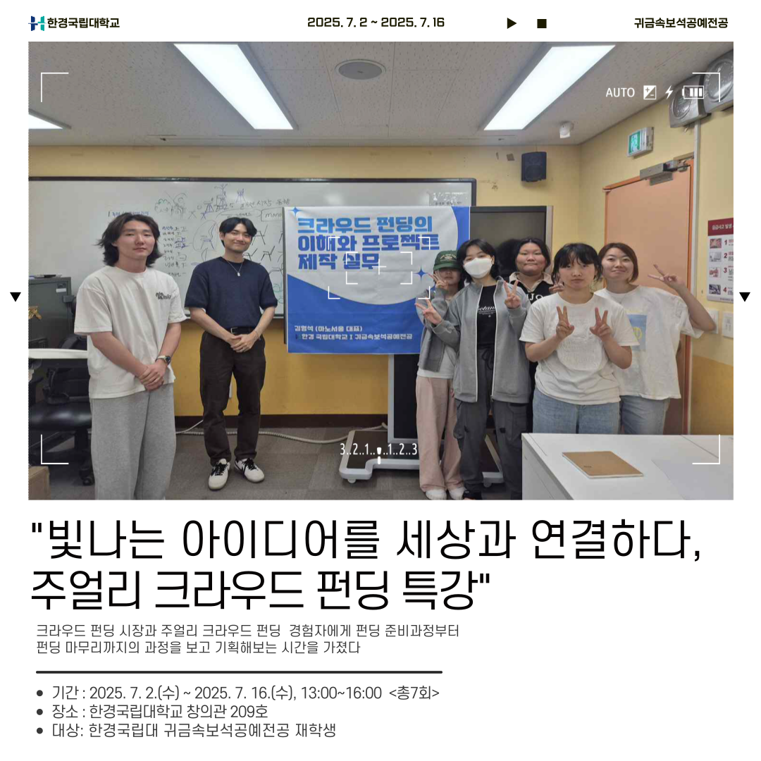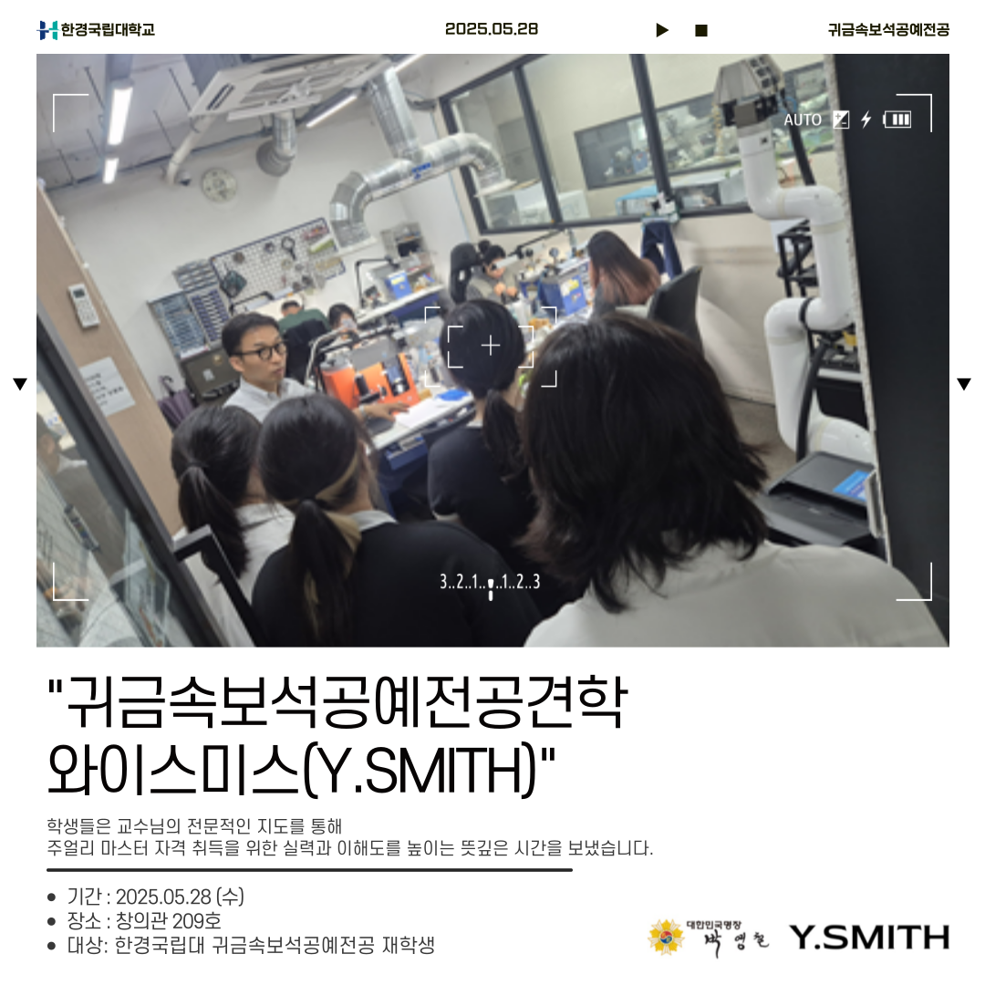 fnctId=bbs,fnctNo=837 RSS 2.0 총 22 개의 게시물이 있습니다. 게시물 검색 제목 작성자 게시글 리스트 2025학년도 귀금속보석공예전공 견학_익산보석박물관 새글 작성일 2025.12.05 작성자 디자인예술스포츠학부 썸네일 자세히 보기 2025학년도 귀금속보석공예전공 견학_티파니앤코 새글 작성일 2025.12.05 작성자 디자인예술스포츠학부 썸네일 자세히 보기 2025학년도 귀금속보석공예전공_졸업전시회 새글 작성일 2025.12.05 작성자 디자인예술스포츠학부 썸네일 자세히 보기 2025학년도 귀금속보석공예전공 특강_영감에서 디자인까지 특강 새글 작성일 2025.12.02 작성자 디자인예술스포츠학부 썸네일 자세히 보기 2025학년도 귀금속보석공예전공 특강_라이노&지브러쉬 모델링 특강 새글 작성일 2025.12.02 작성자 디자인예술스포츠학부 썸네일 자세히 보기 2025학년도 귀금속보석공예전공 특강_[인센티브]지브러쉬를 활용한 유기적 모델링 실습특강 새글 작성일 2025.12.02 작성자 디자인예술스포츠학부 썸네일 자세히 보기 2025학년도 귀금속보석공예전공 특강_[육성사업]특화 교육과정 개발·적용 특강 새글 작성일 2025.12.01 작성자 디자인예술스포츠학부 썸네일 자세히 보기 2025학년도 귀금속보석공예전공 견학_주얼리페어 새글 작성일 2025.12.01 작성자 디자인예술스포츠학부 썸네일 자세히 보기 2025학년도 귀금속보석공예전공 견학_국가무형유산전수관 새글 작성일 2025.12.01 작성자 디자인예술스포츠학부 썸네일 자세히 보기 2025학년도 귀금속보석공예전공 특강_[육성사업]주얼리 조각 세팅 특강 작성일 2025.11.28 작성자 디자인예술스포츠학부 썸네일 자세히 보기 2025학년도 귀금속보석공예전공 견학_와이스미스 작성일 2025.11.28 작성자 디자인예술스포츠학부 썸네일 자세히 보기 2025학년도 귀금속보석공예전공 특강_[육성사업]주얼리크라우드 펀딩 특강 작성일 2025.11.28 작성자 디자인예술스포츠학부 썸네일 자세히 보기 처음 12 1 2 다음 페이지 끝