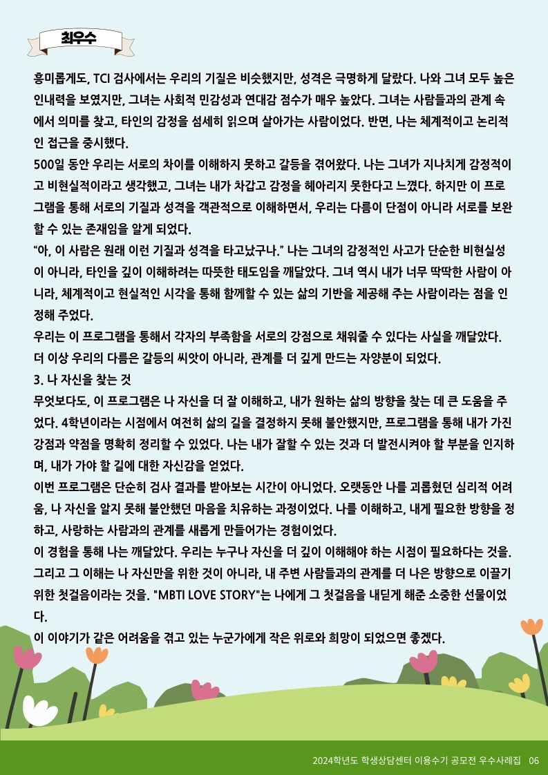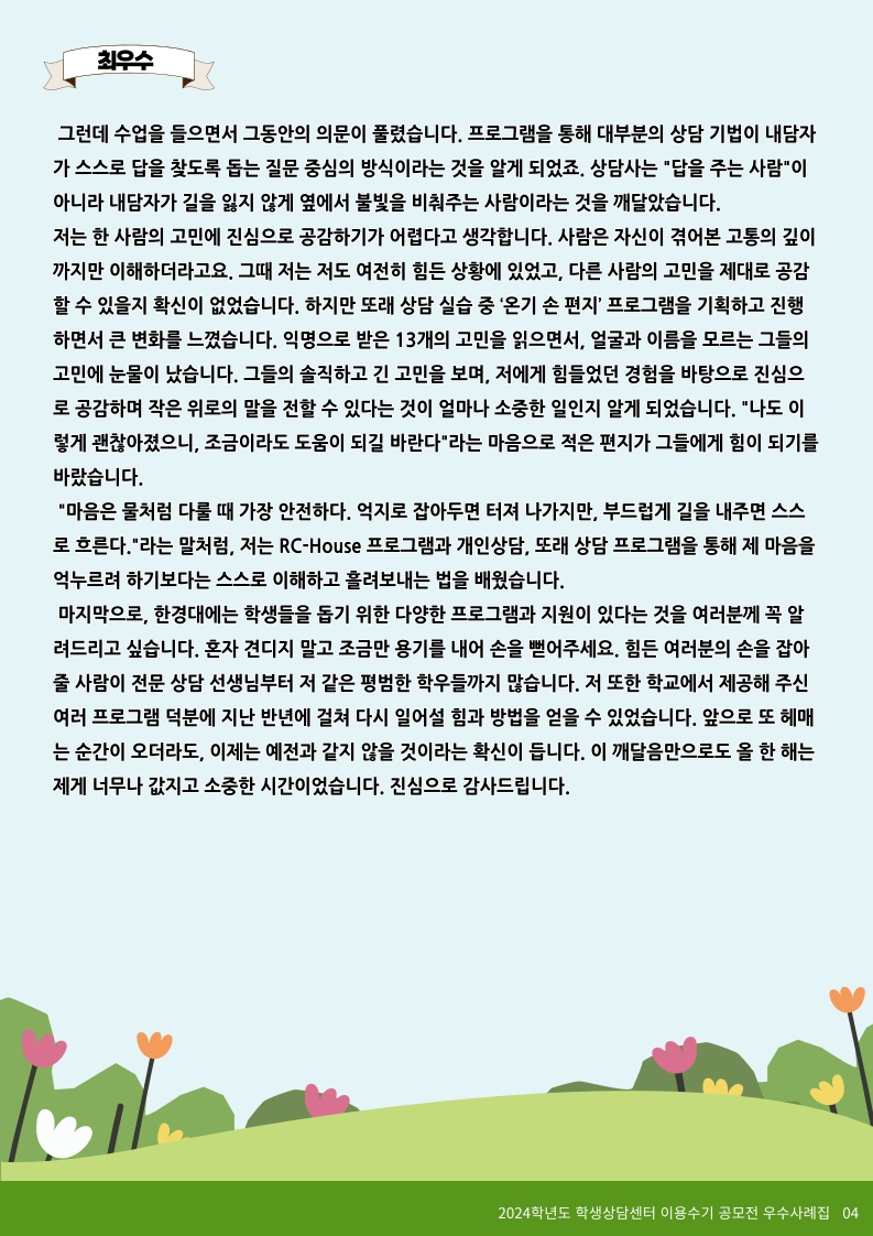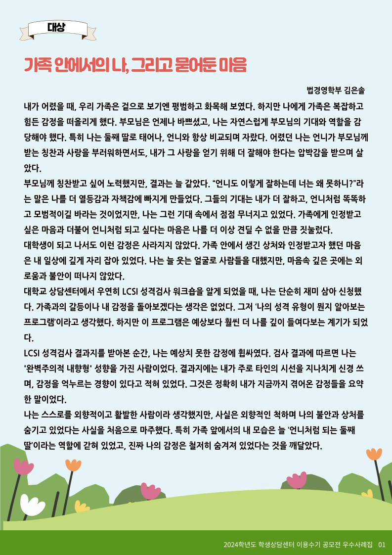 2024학년도 학생상담센터 이용수기 당선작(대상 1편, 최우수 2편)