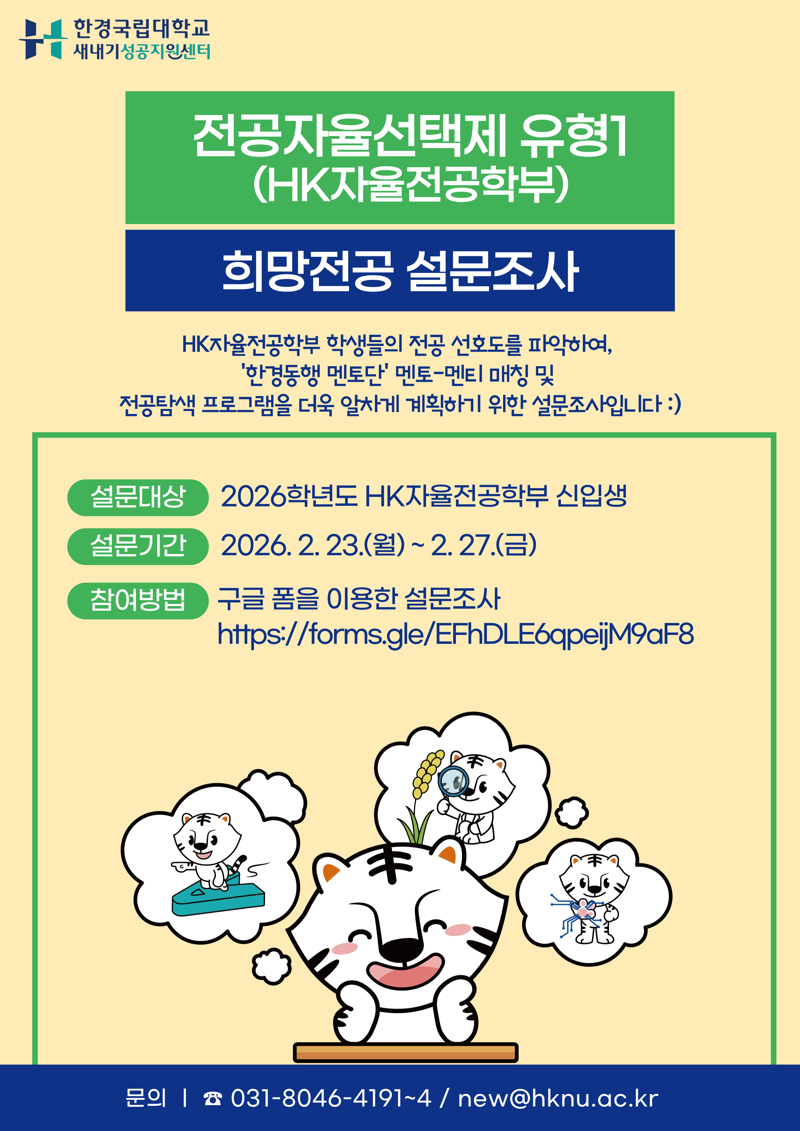 [새내기성공지원센터] HK자율전공학부 신입생 대상 희망전공 설문 조사 참여 안내