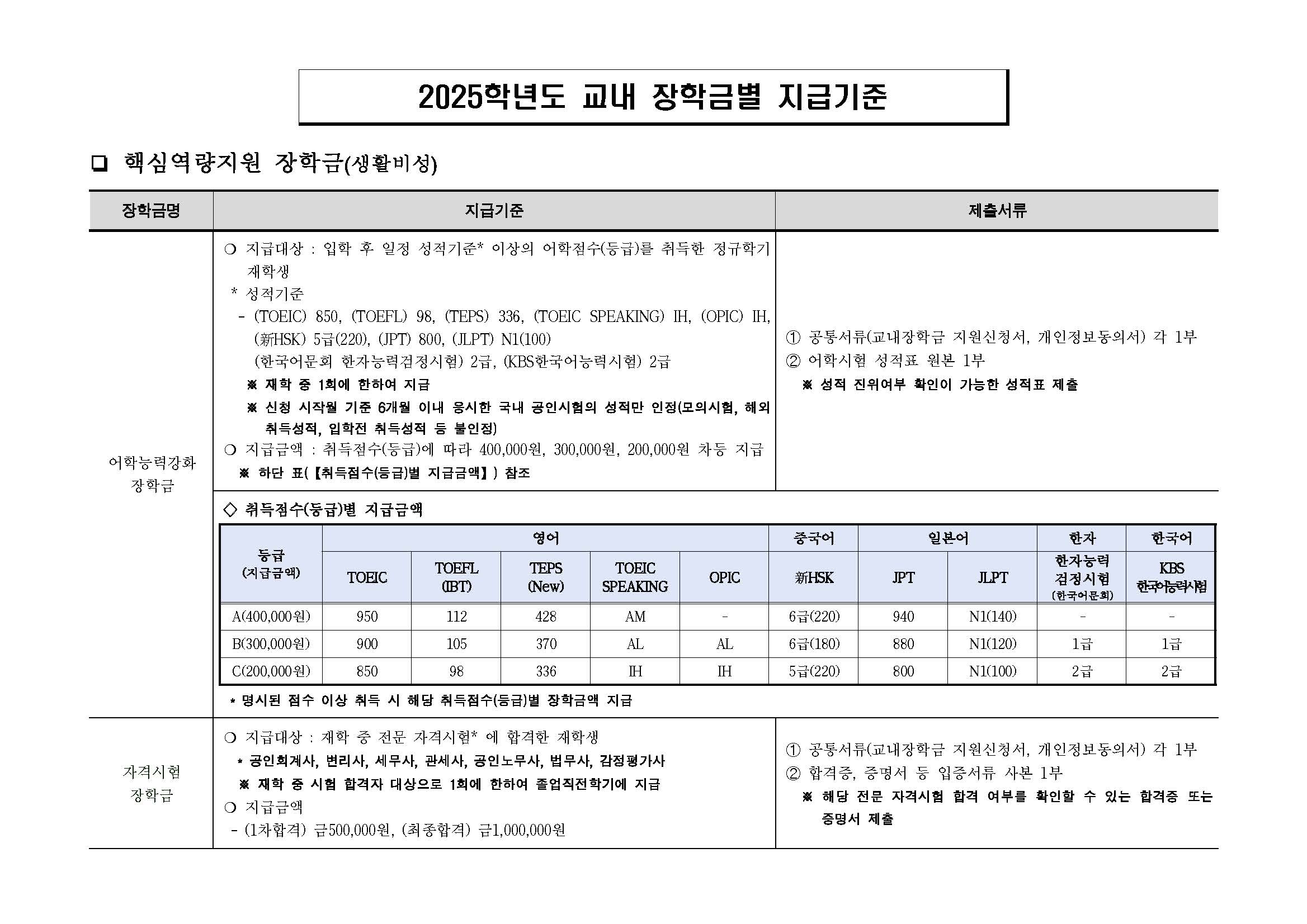 2025학년도 2학기 핵심역량지원 장학금 신청 안내