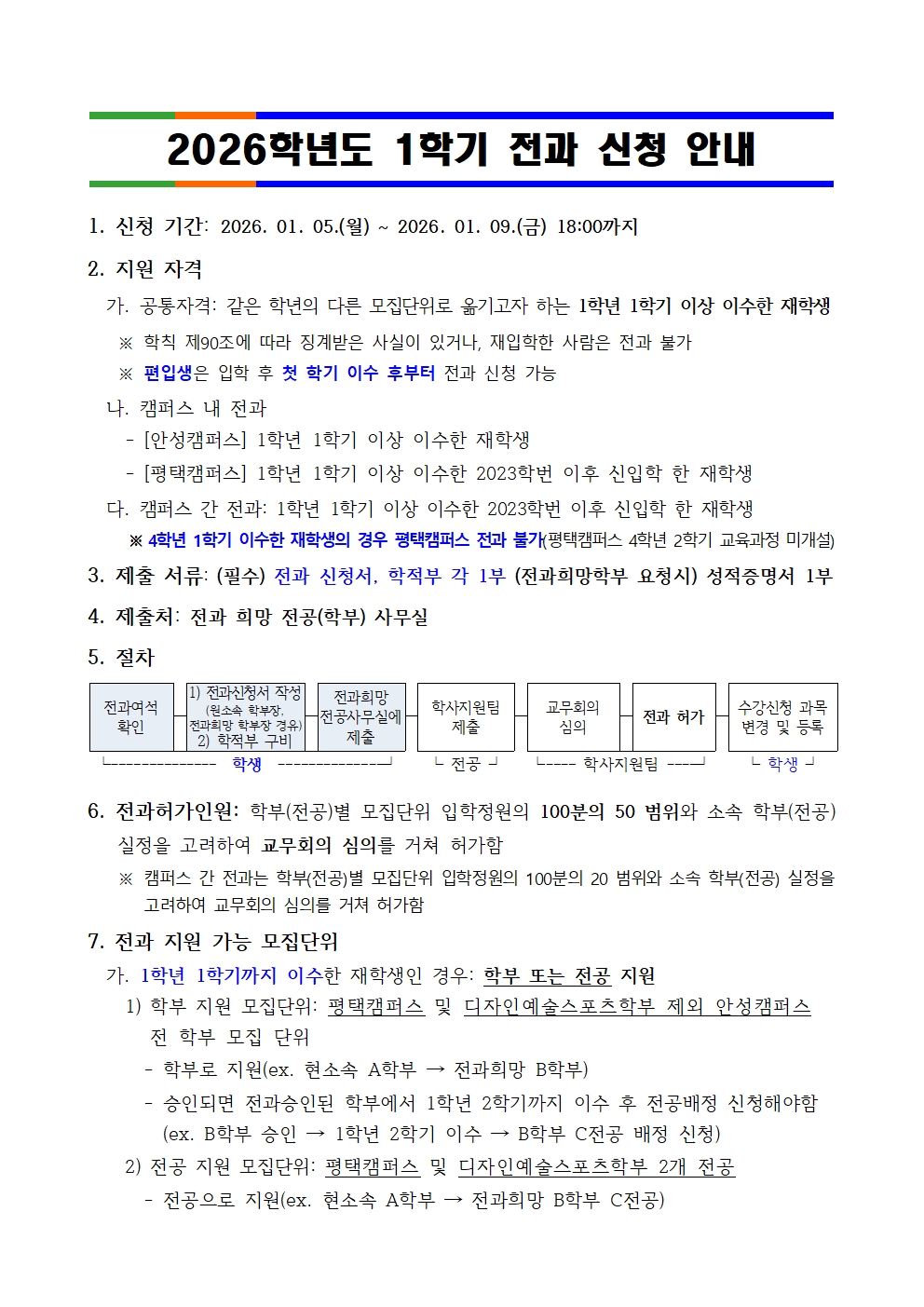 붙임1. 2026학년도 1학기 전과 신청 안내.hwp