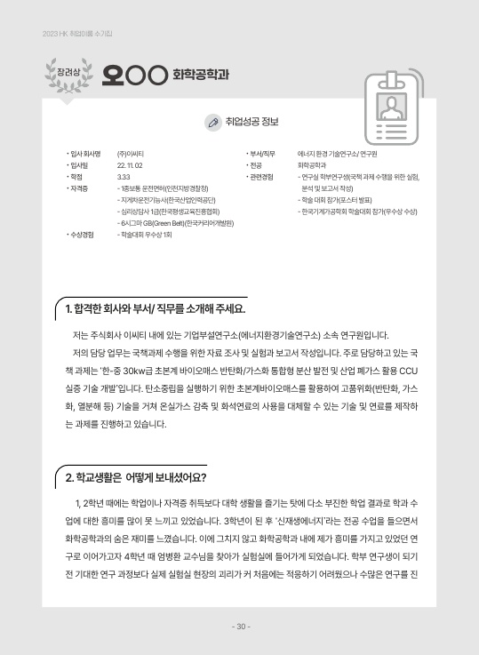 2023년 취업이룸 - 장려상 수상작 -화학공학과