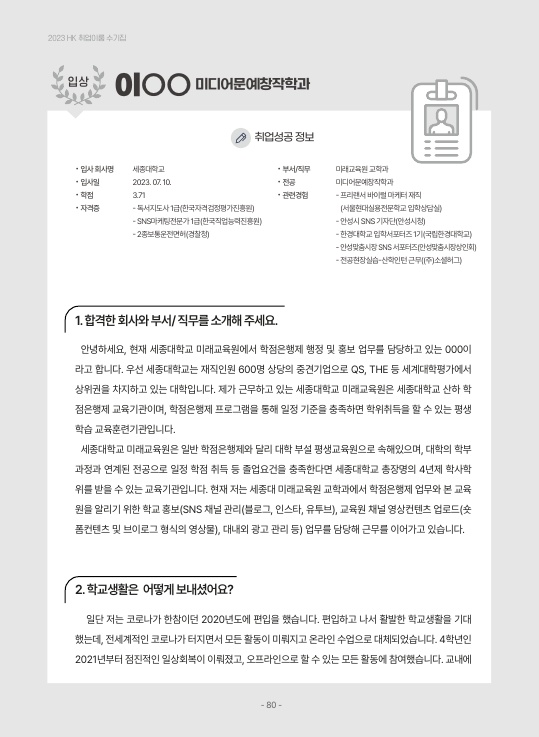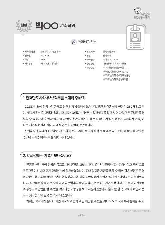 2023년 취업이룸 - 입상 수상작 -미디어문예창작학, 건축학