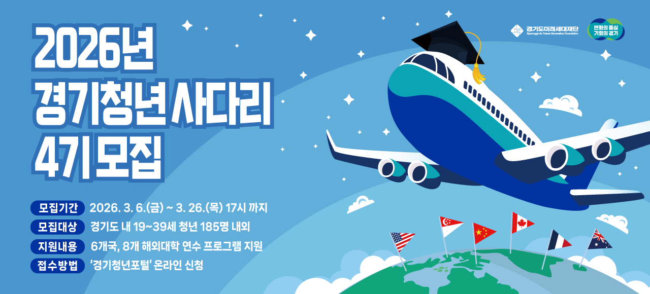 경기도미래세대재단에서 운영하는 <2026년 경기청년 사다리 프로그램>을 아래와 같이 안내하오니,