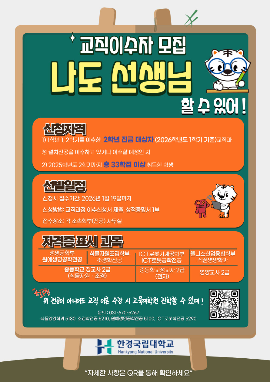 [교직과정] 2026학년도 교직과정 이수예정자 모집 안내