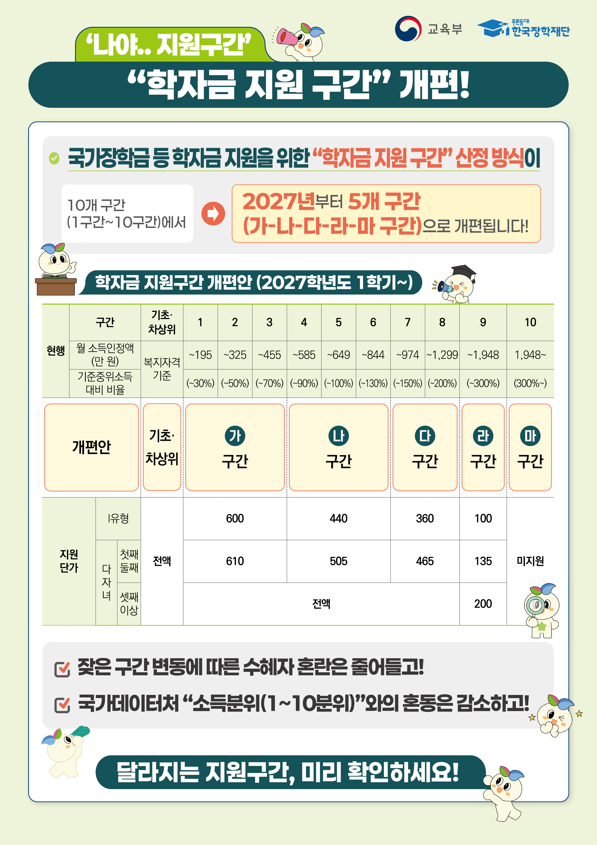 [한국장학재단] 국가장학금 등 지원을 위한 학자금 지원구간 개편 사전 안내