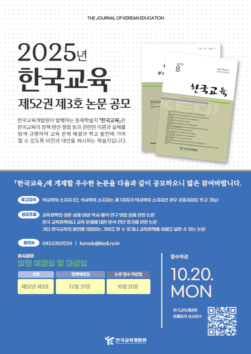 [한국교육개발원] 등재학술지 「한국교육」 제52권 제3호 게재논문 공모 안내