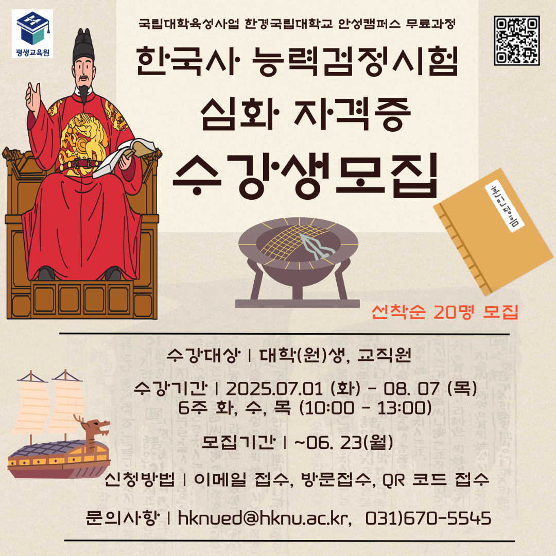 2025 국립대육성사업 한국사 심화 자격증 무료과정 수강생 모집 안내