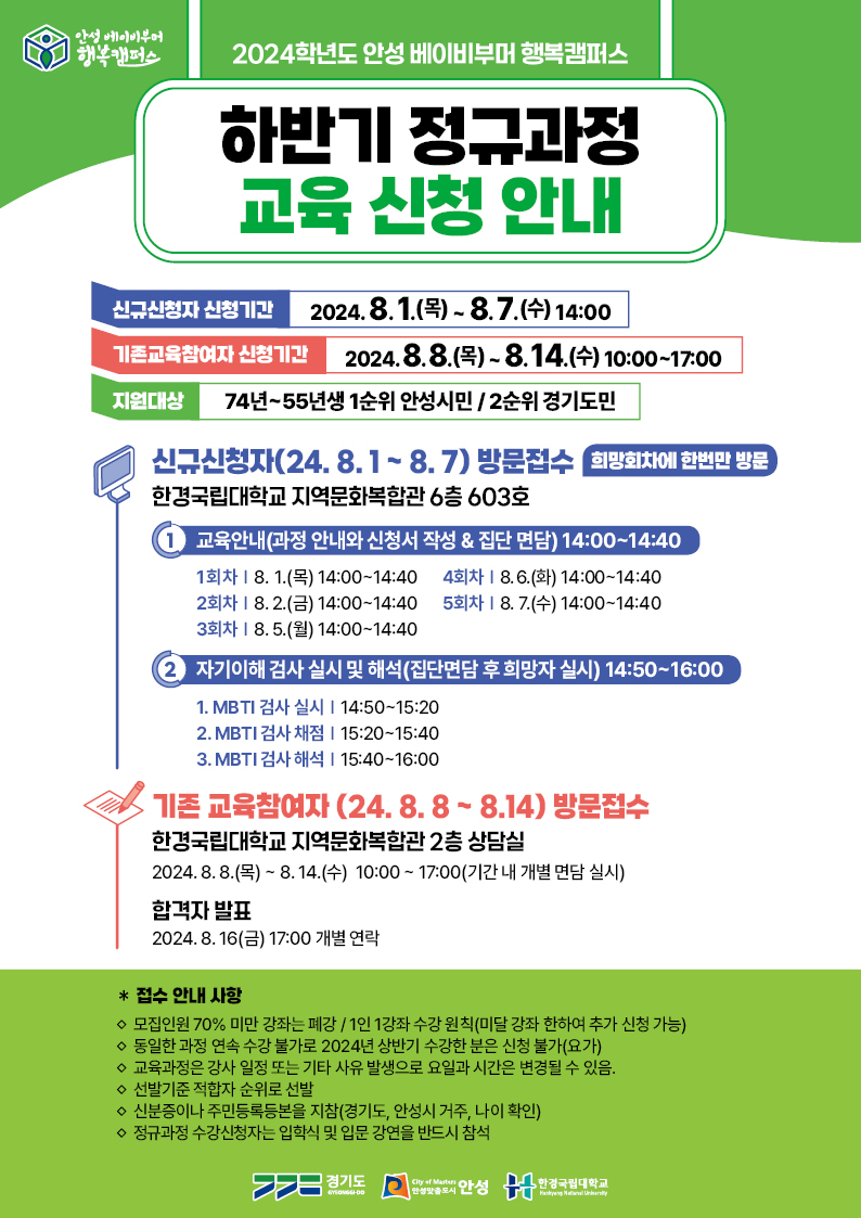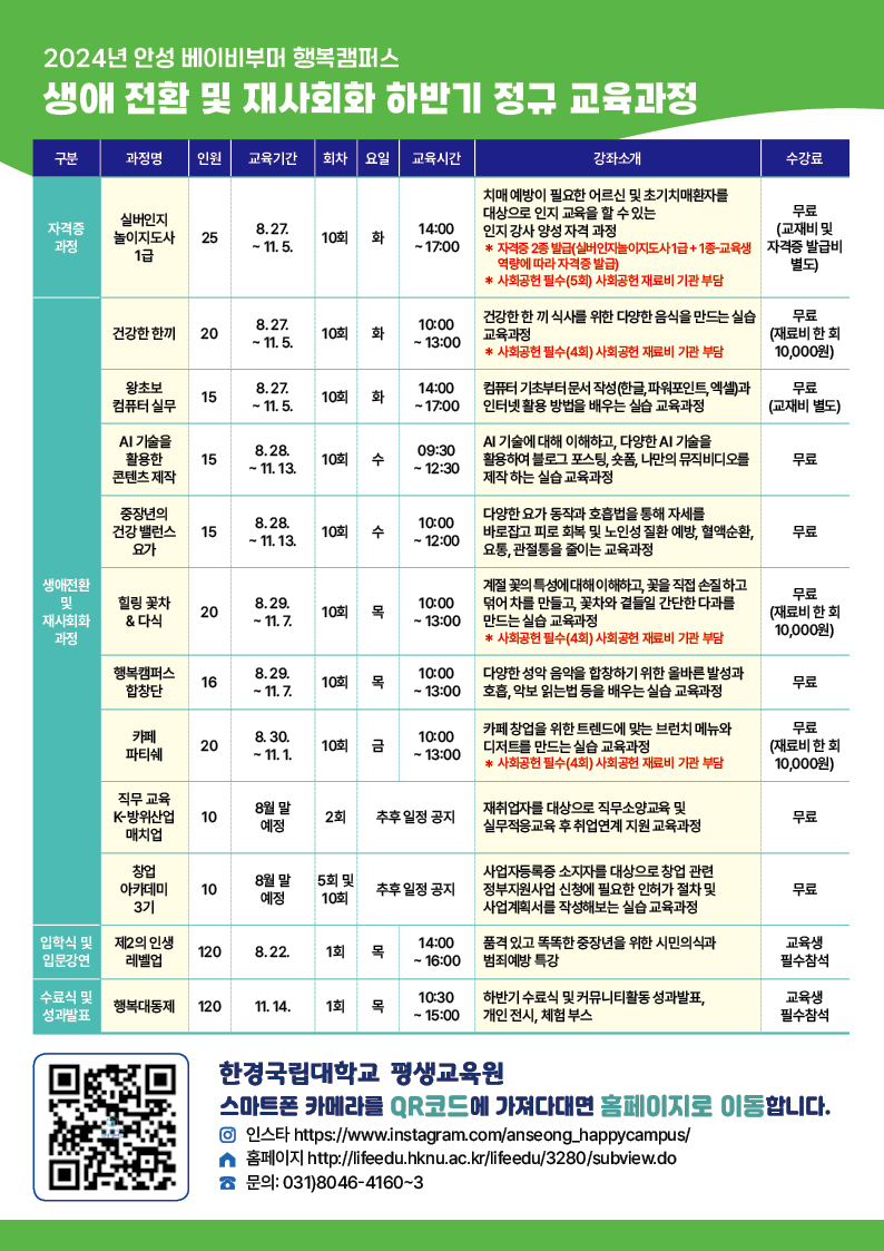 안성시 5060을 위한 다양한 정규과정이 개설 되었습니다!