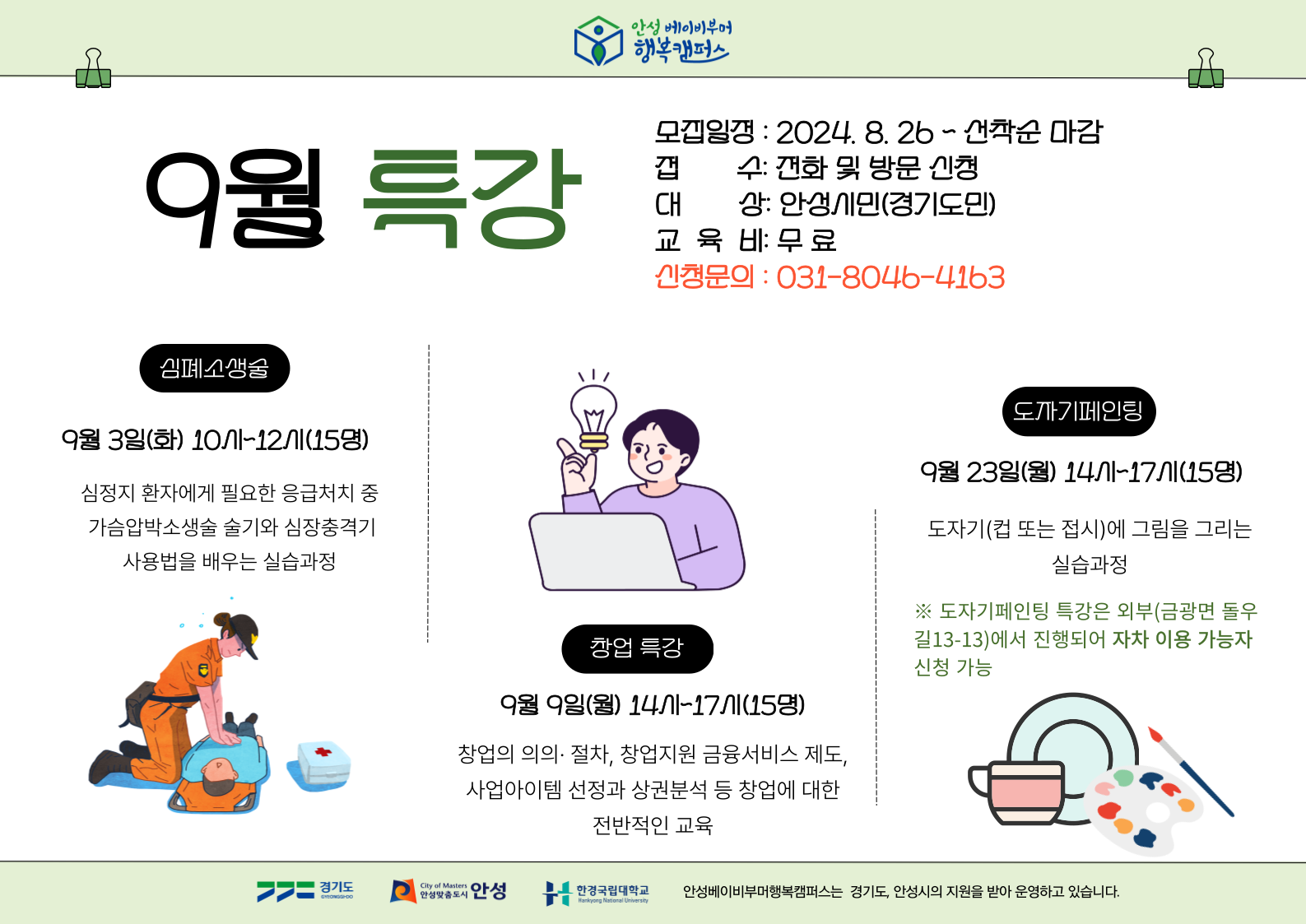 안성행복캠퍼스에서 『9월 특강』을 준비했습니다!
