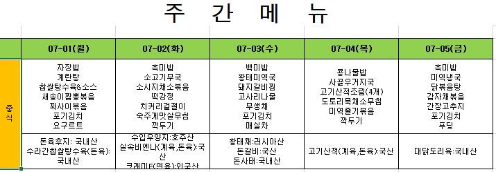 2024. 7. 15. ~ 2024. 7. 19. 주간식단표