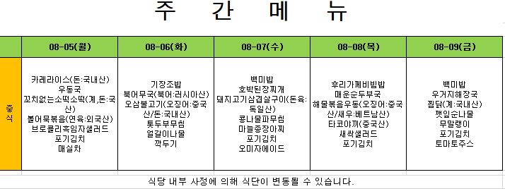 2024. 7. 22. ~ 2024. 7. 26. 주간식단표