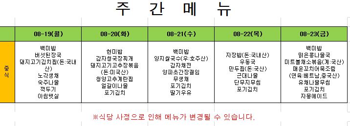 2024. 7. 15. ~ 2024. 7. 19. 주간식단표