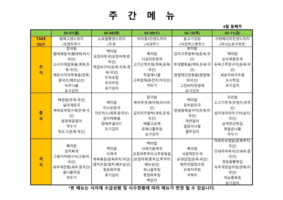 2024.4.1. ~ 2024. 4. 5. 주간식단표
