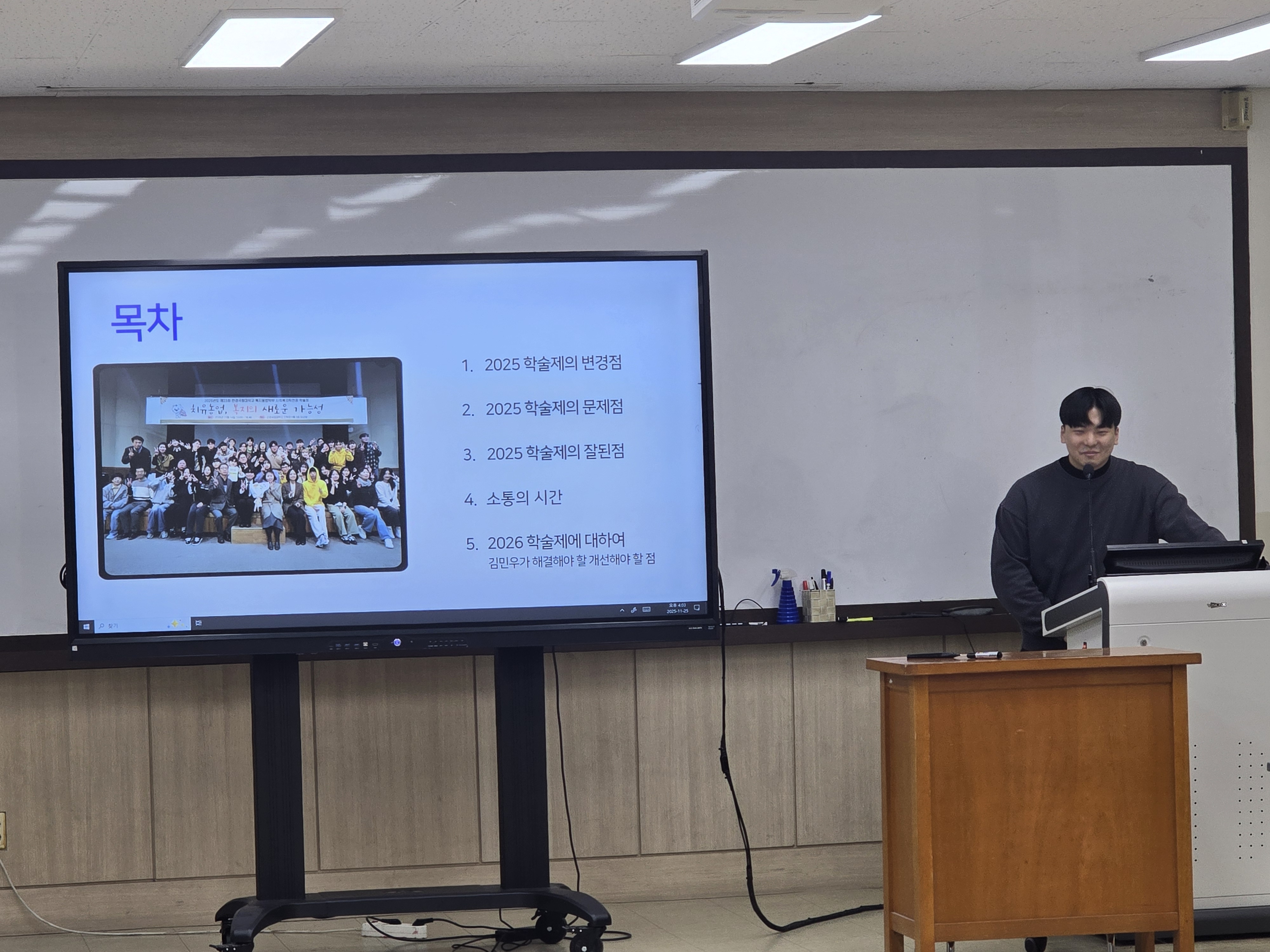 또한 내년도 학술제의 전반적 방향성과 운영 방식에 대해서도 참여자들 간 논의가 이루어졌습니다. 학과의 학문적 특성을 반영한 주제 구성, 학생 참여 확대 방안, 발표 방식의 다양화 등 여러 아이디어가 제안되며 발전적인 방향을 함께 모색했습니다.