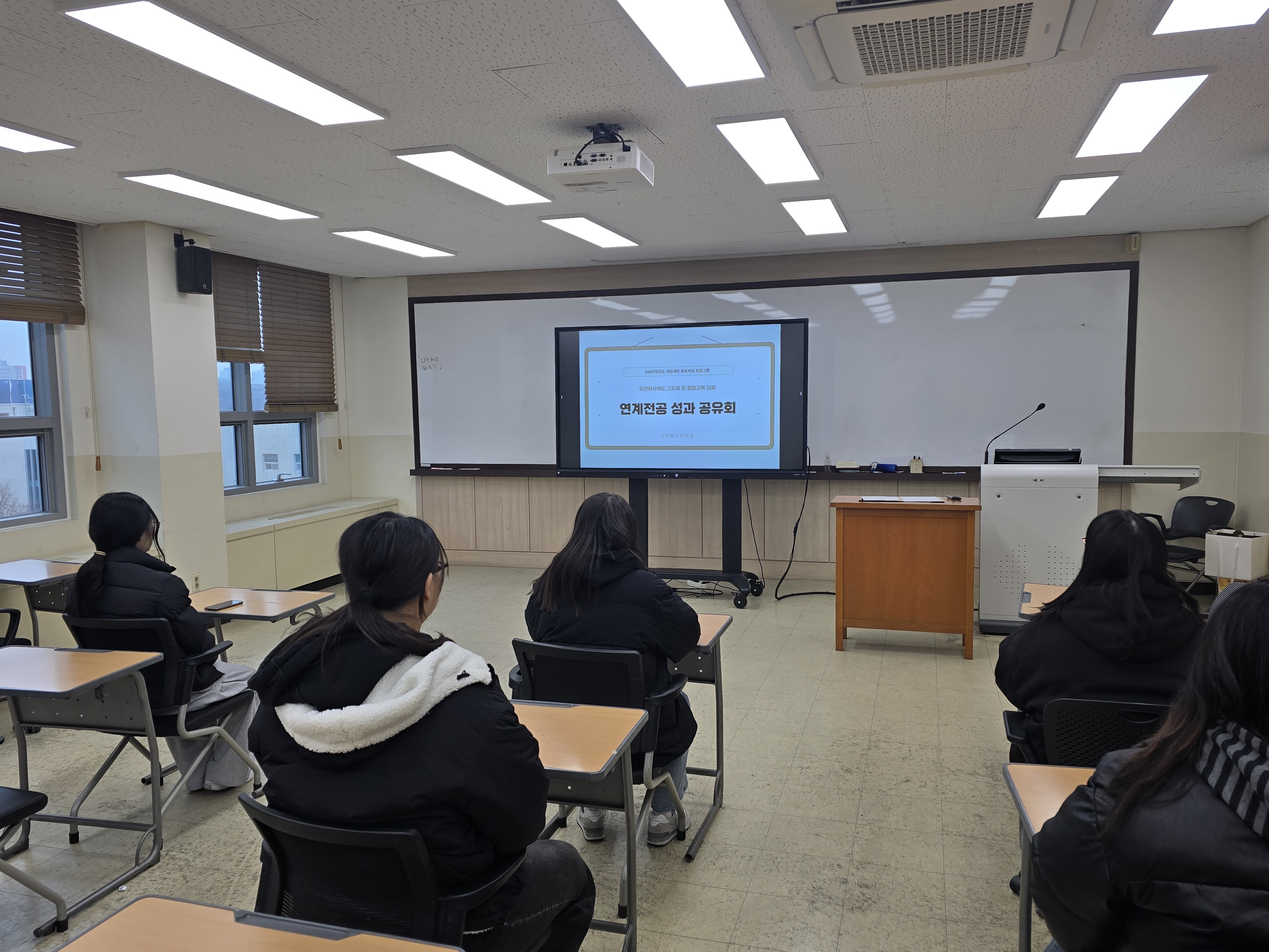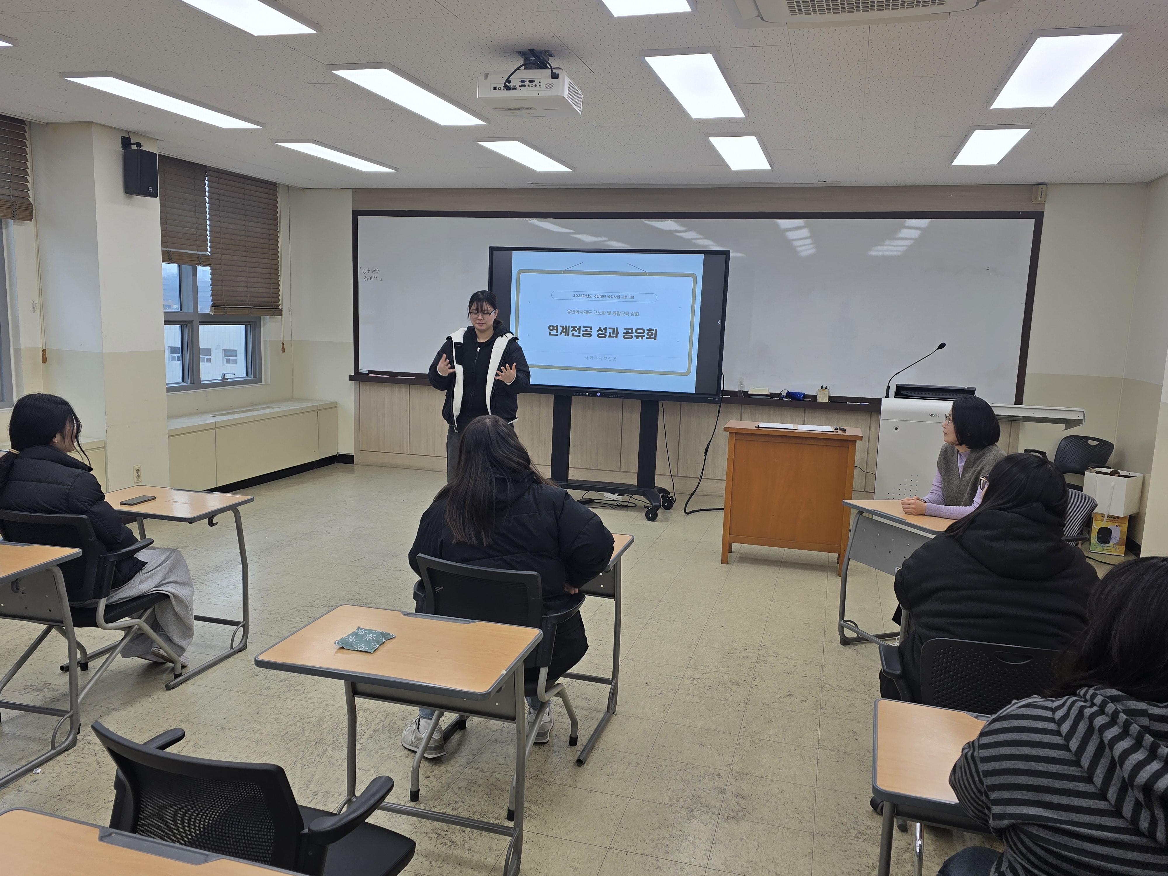 본 학과에서는 유연학사 제도의 하나인 연계전공을 이수한 학생들을 대상으로, 한 학기 동안의 학업 경험과 배움을 공유하는 성과공유회를 진행하였습니다. 이번 성과공유회는 연계전공을 통해 타 전공 수업을 수강한 학생들이 직접 참여하여, 학업 과정에서 느낀 점과 전공 간 융합 학습의 의미를 되짚어보는 뜻깊은 자리로 마련되었습니다.