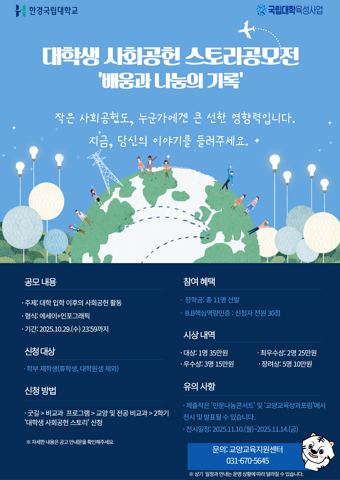 [교양교육지원센터] 대학생 사회공헌 스토리(배움과 나눔의 기록) 공모전 기간연장(~10/29)