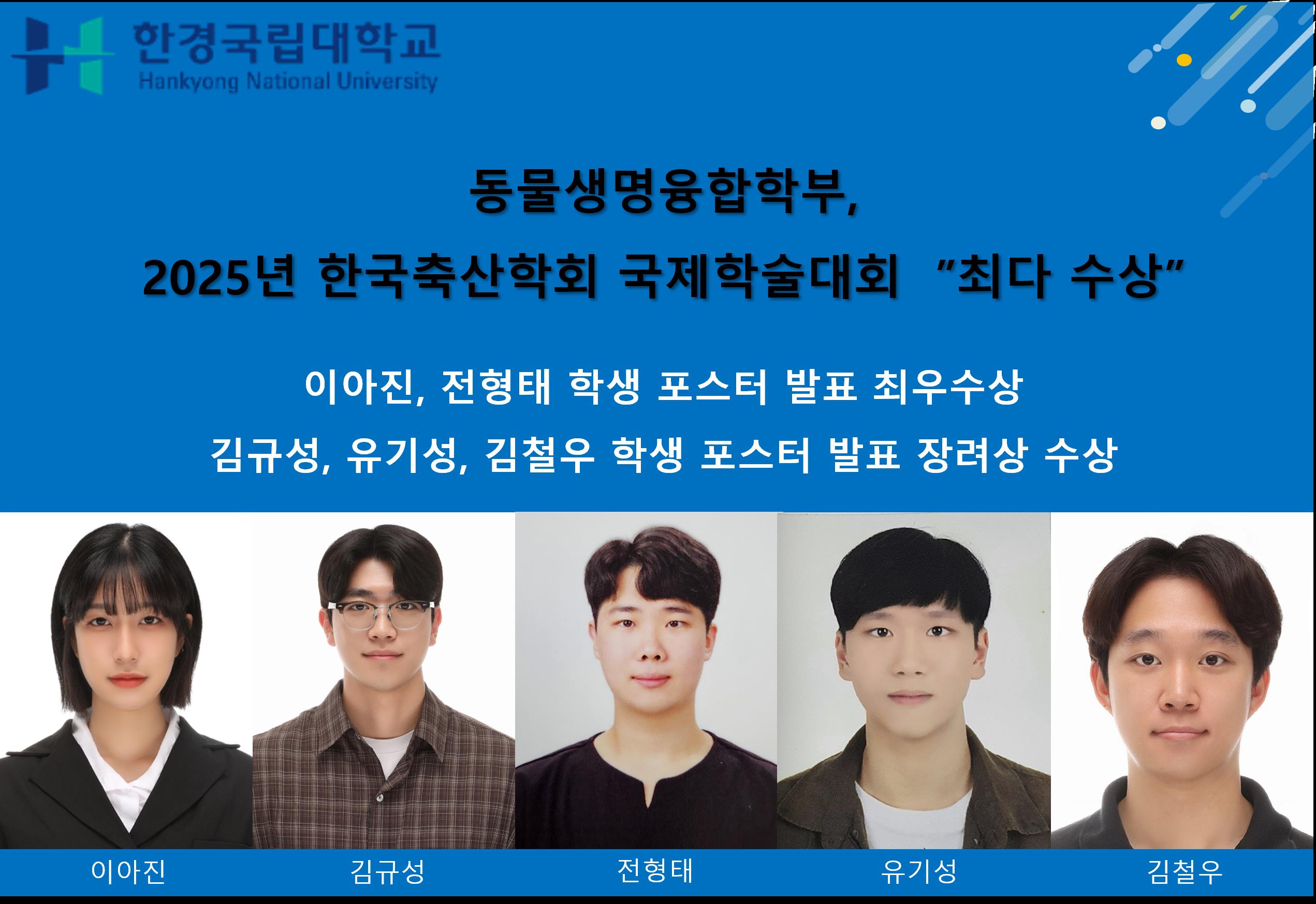 지난 6월 25일부터 27일까지 대구 EXCO에서 열린 ‘2025년 한국축산학회 국제학술대회’에서 5개 상을 수상했다.